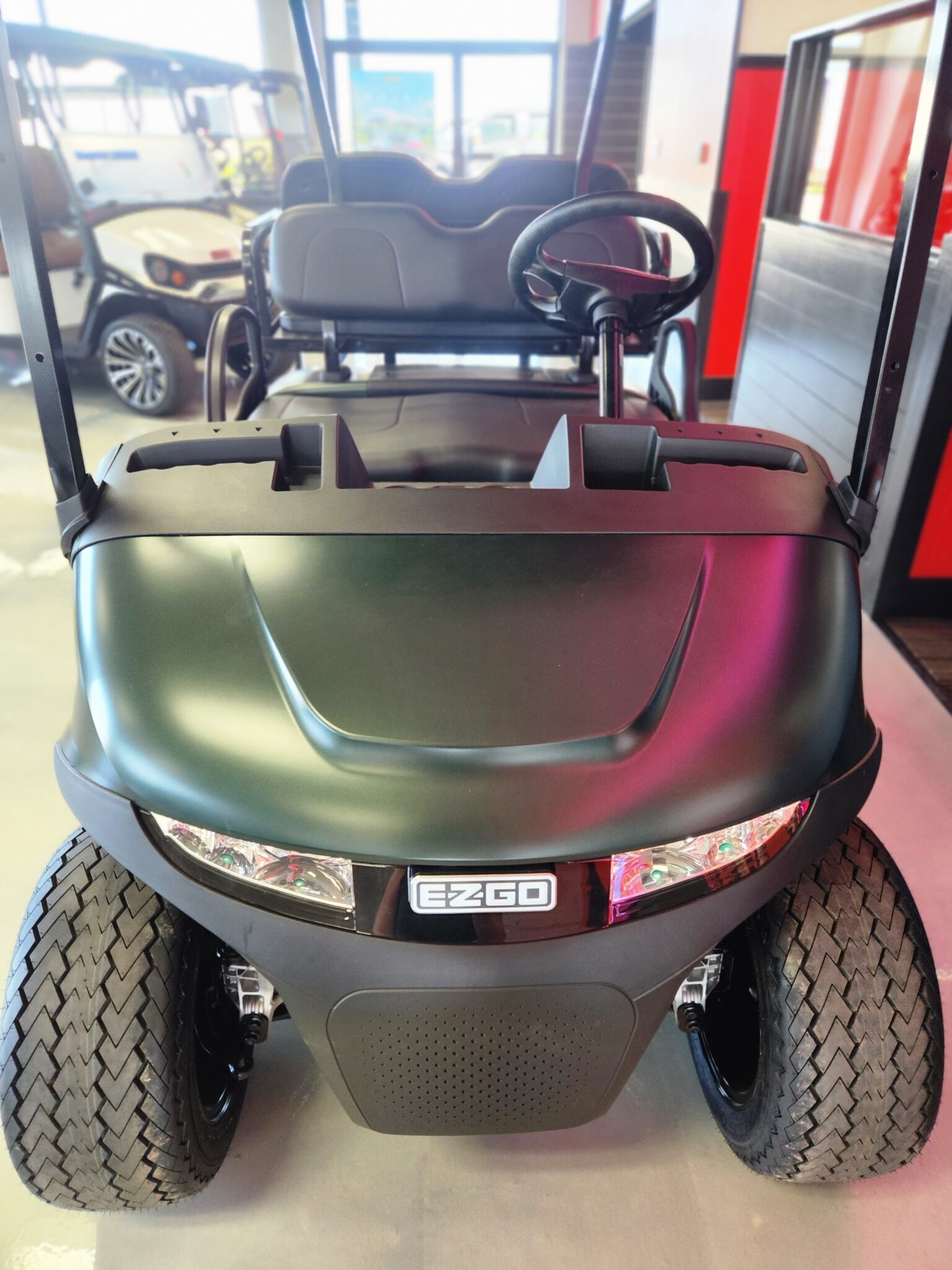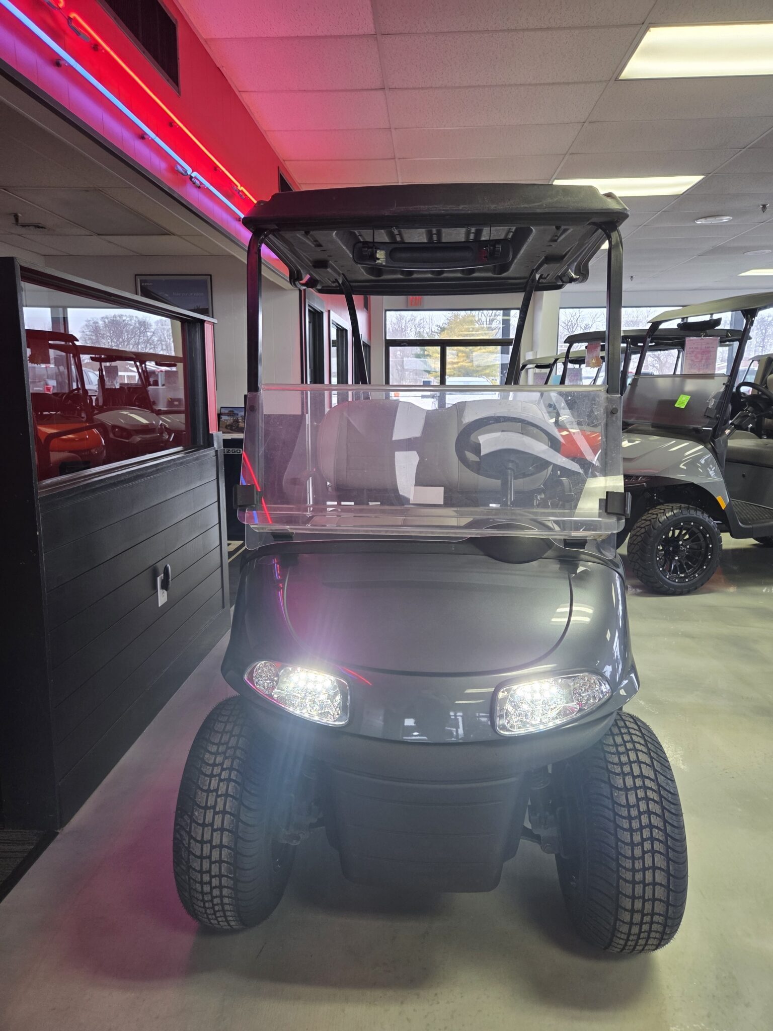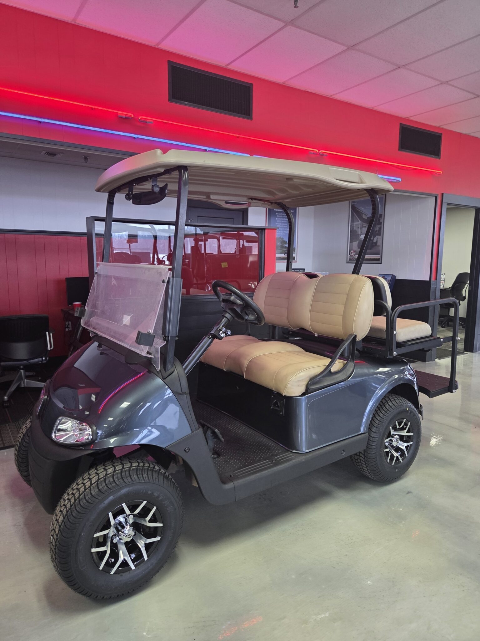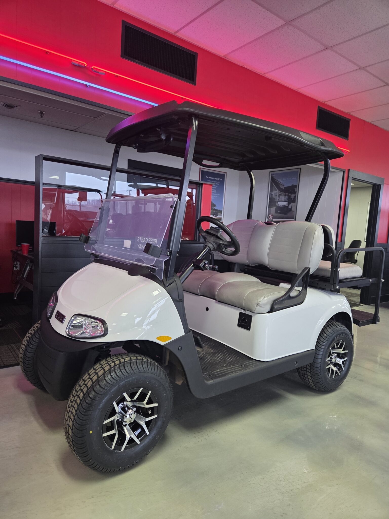 We stock a wide vari­ety of qual­i­ty golf carts to have some­thing for every­body. We are con­stant­ly build­ing carts, acquir­ing trade-ins, and pur­chas­ing fleets. There is a lag between when we have carts avail­able and when they are post­ed on the inter­net (espe­cial­ly dur­ing the busiest times of the year). If you are look­ing for a spe­cif­ic golf cart and you don’t see it on this web­site, please take the time to give us a call. (574) 2975637. We may have just tak­en the cart you are look­ing for in on trade; or, we may already be build­ing what you are look­ing for.