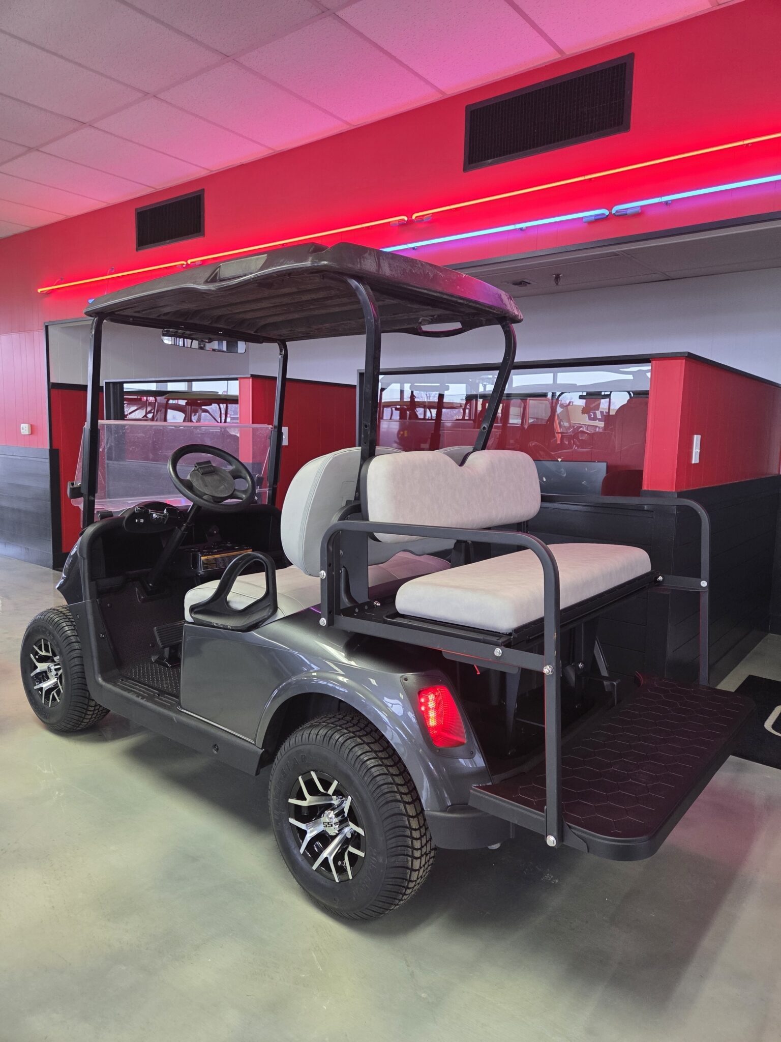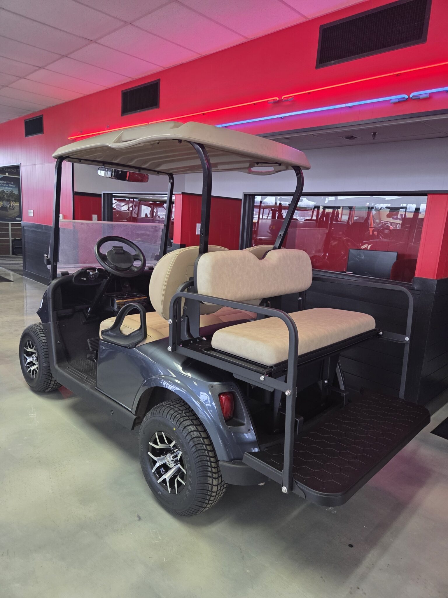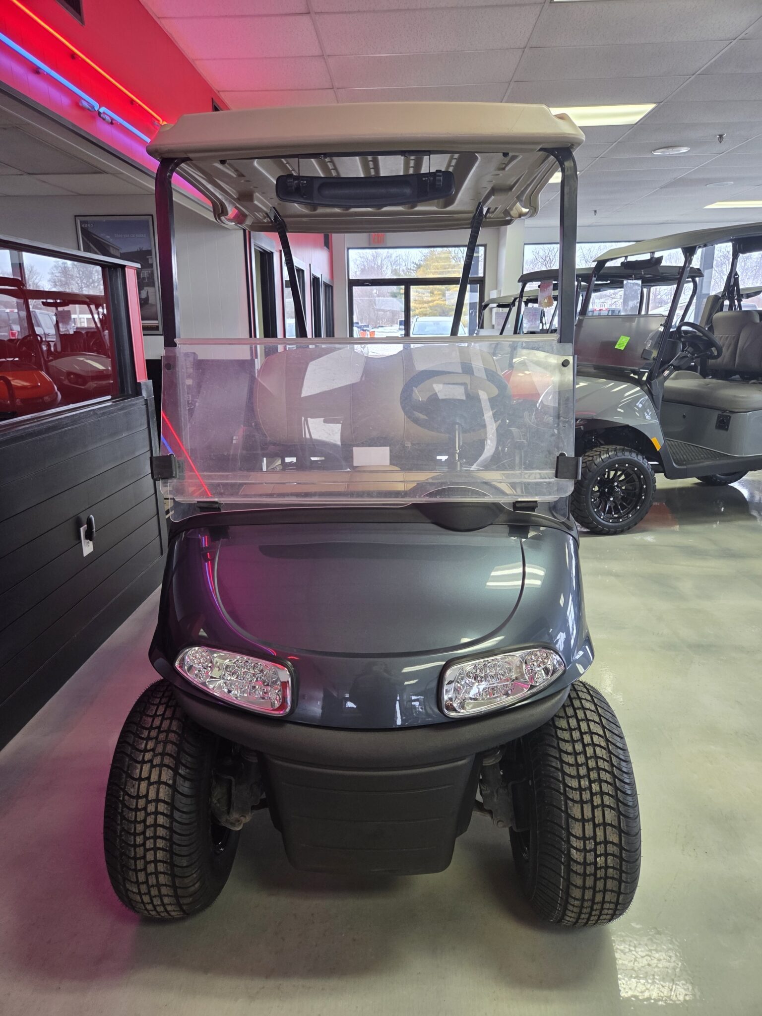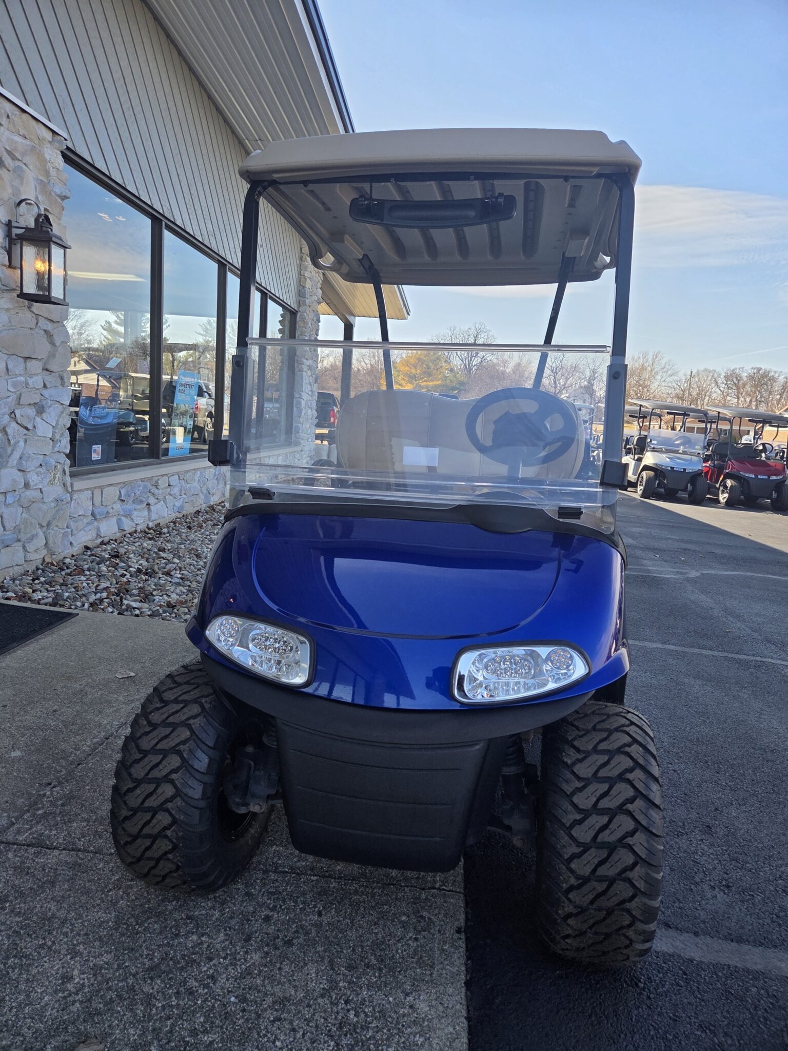 We stock a wide vari­ety of qual­i­ty golf carts to have some­thing for every­body. We are con­stant­ly build­ing carts, acquir­ing trade-ins, and pur­chas­ing fleets. There is a lag between when we have carts avail­able and when they are post­ed on the inter­net (espe­cial­ly dur­ing the busiest times of the year). If you are look­ing for a spe­cif­ic golf cart and you don’t see it on this web­site, please take the time to give us a call. (574) 2975637. We may have just tak­en the cart you are look­ing for in on trade; or, we may already be build­ing what you are look­ing for.